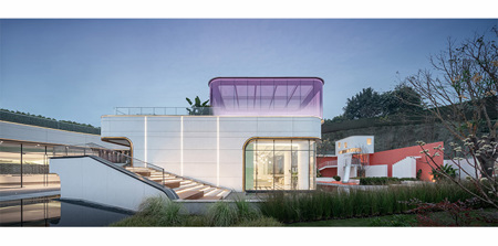 The architecture is not a single isolated entity. Many approaches such as the "carving" and softening of site, the extension and connection of space and the integration and contrast of colors were adopted to harmoniously integrate the terrain, architecture, landscape and interior space. No enclosure walls are set along the road. Instead, the open greenery and transitional waterscapes form with the city.