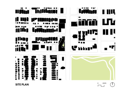 Modular housing units wind above from the west to the east, enlivening the typical residential corridor while creating roof gardens that acknowledge the public park to the east and the quiet residential neighborhood to the west.