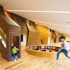 This is a facility which has two functions of kindergarten and nursery in Toyama which is surrounded by Tateyama mountain range. Recently less children play outside but they play indoor with video games and toys. In this situation it‘s difficult they can play creatively, because those games and toys have fixed rules to play. To solve this problem, we create 15 den spaces inside the building with the concept ‘Play full of adventurous spirit and curiosity, surrounded by Tateyama mountain range’. The design idea of 15 play spaces is come from nature elements people can see in the Tateyama mountain range like tunnel, cave, slope, fall, pond, and trail. There is no rule to play in these spaces so that children can think and play creatively. Some of play spaces are for exercise, some are for curiosity, and others for communication. In such different spaces, they can find their favorite space to play and spread their imagination world.
