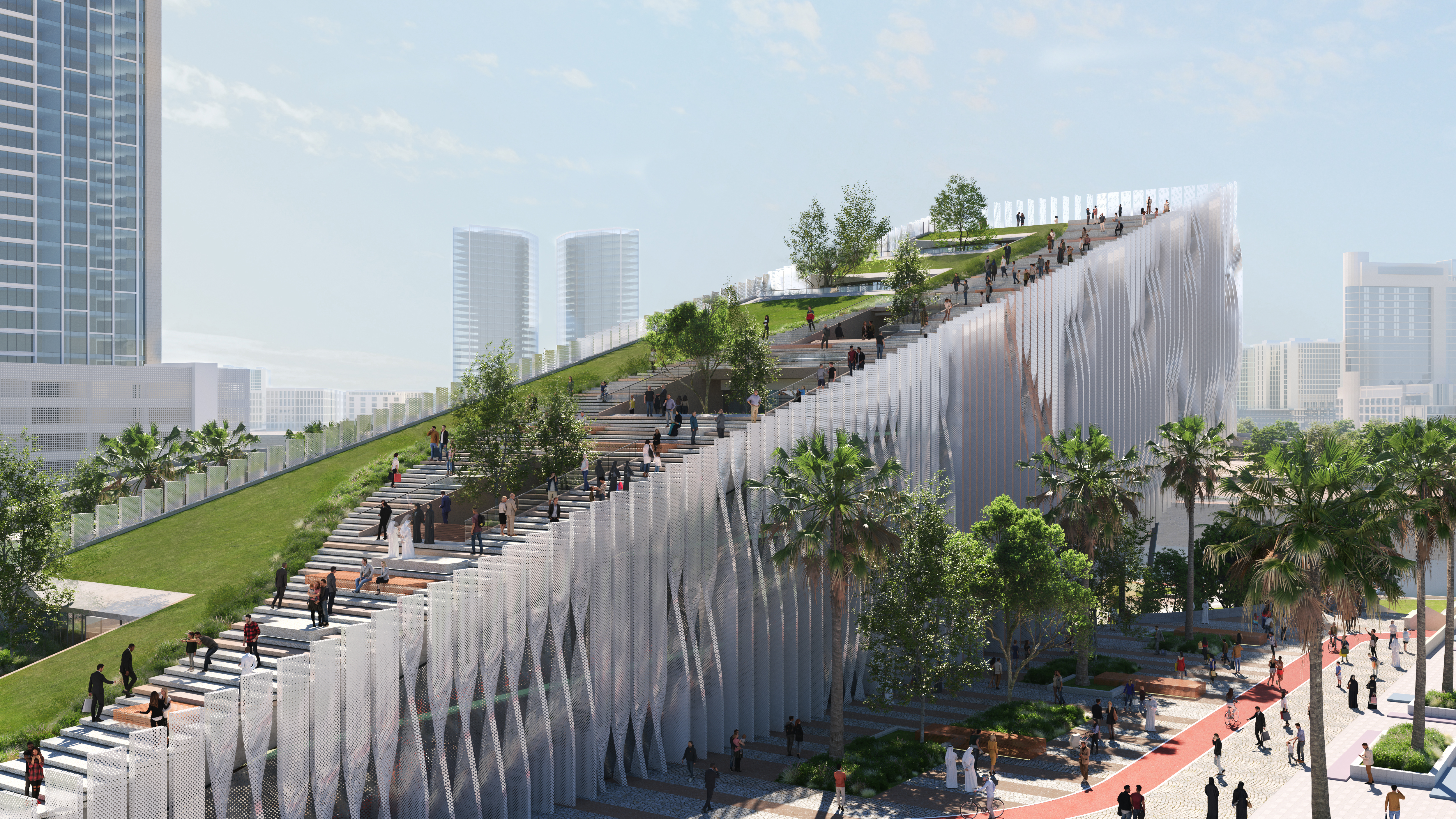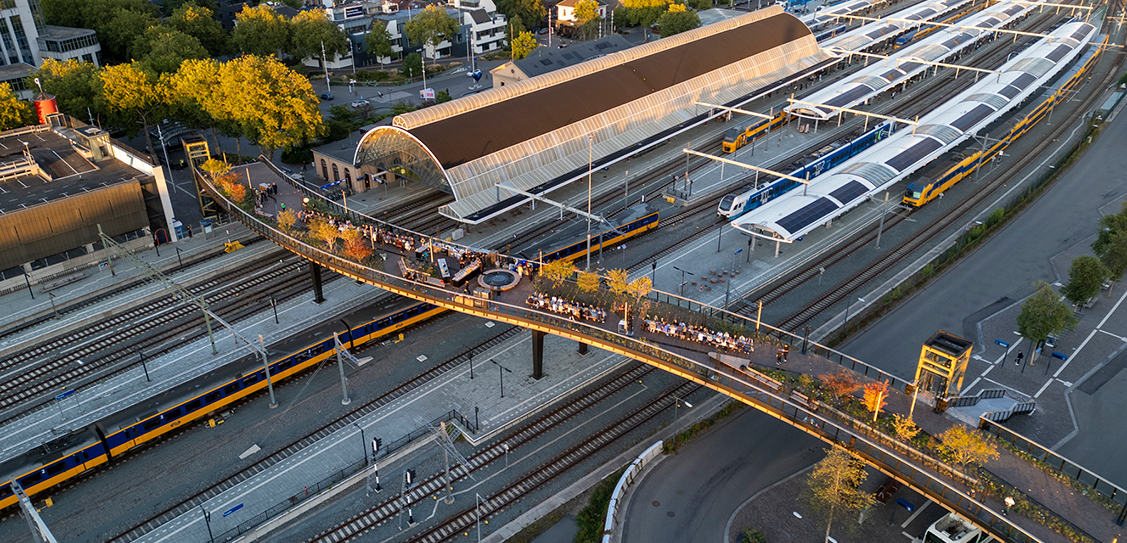 The Passerelle is a green street, elevated above the train tracks, that acts as an equitable, sustainable and engaging public pedestrian connection between Zwolle’s historic city centre and its newly expanding southern districts. The 130m long, 10m wide passerelle, constructed from bio-based materials and the longest cross-laminated ti...