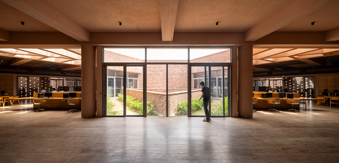 Located within the 23-acre campus of the University Institute of Management Studies at Chandigarh University, this 94,000 sq.ft. multi-utility building caters to over 7,000 students, integrating a cafeteria, library, and guest house within a single built volume. Situated in Gharuan, a peri-urban region near Mohali—a satellite town of C...